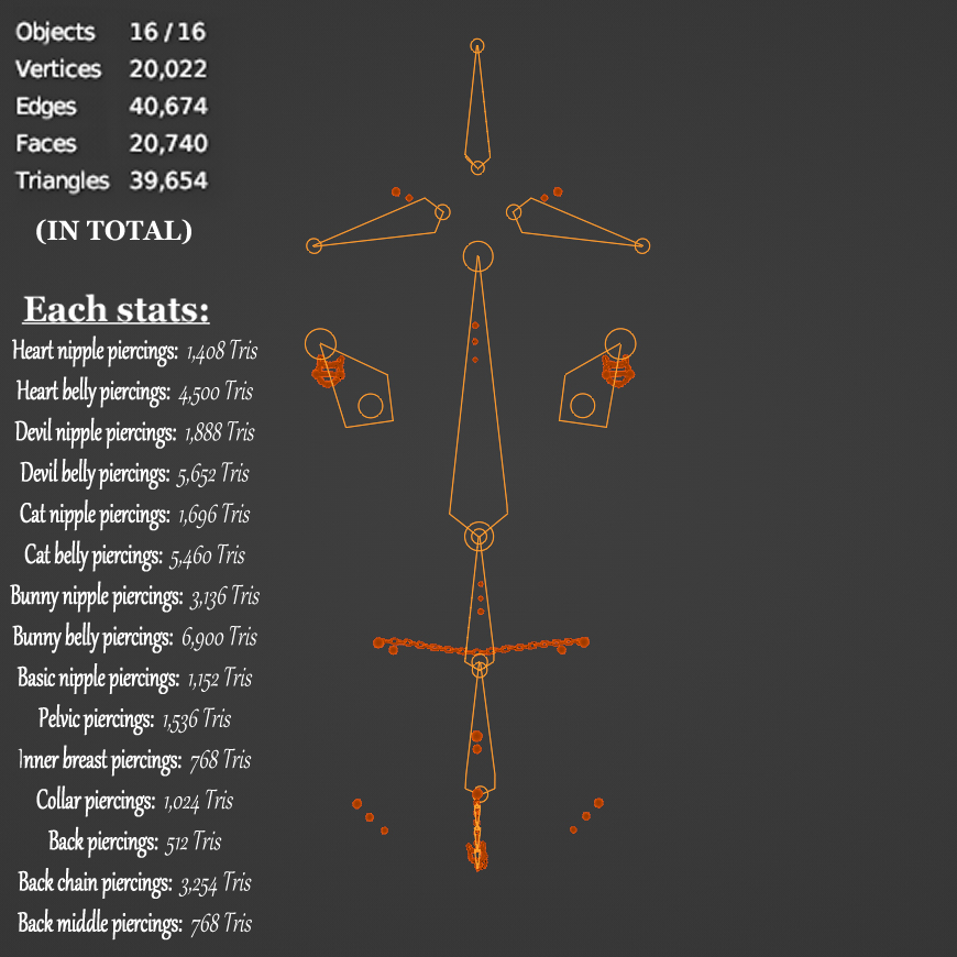 This pack has been upgraded with a lot more choices, but also with a bonus that the piercings are a lot more optimized than the previous pack.